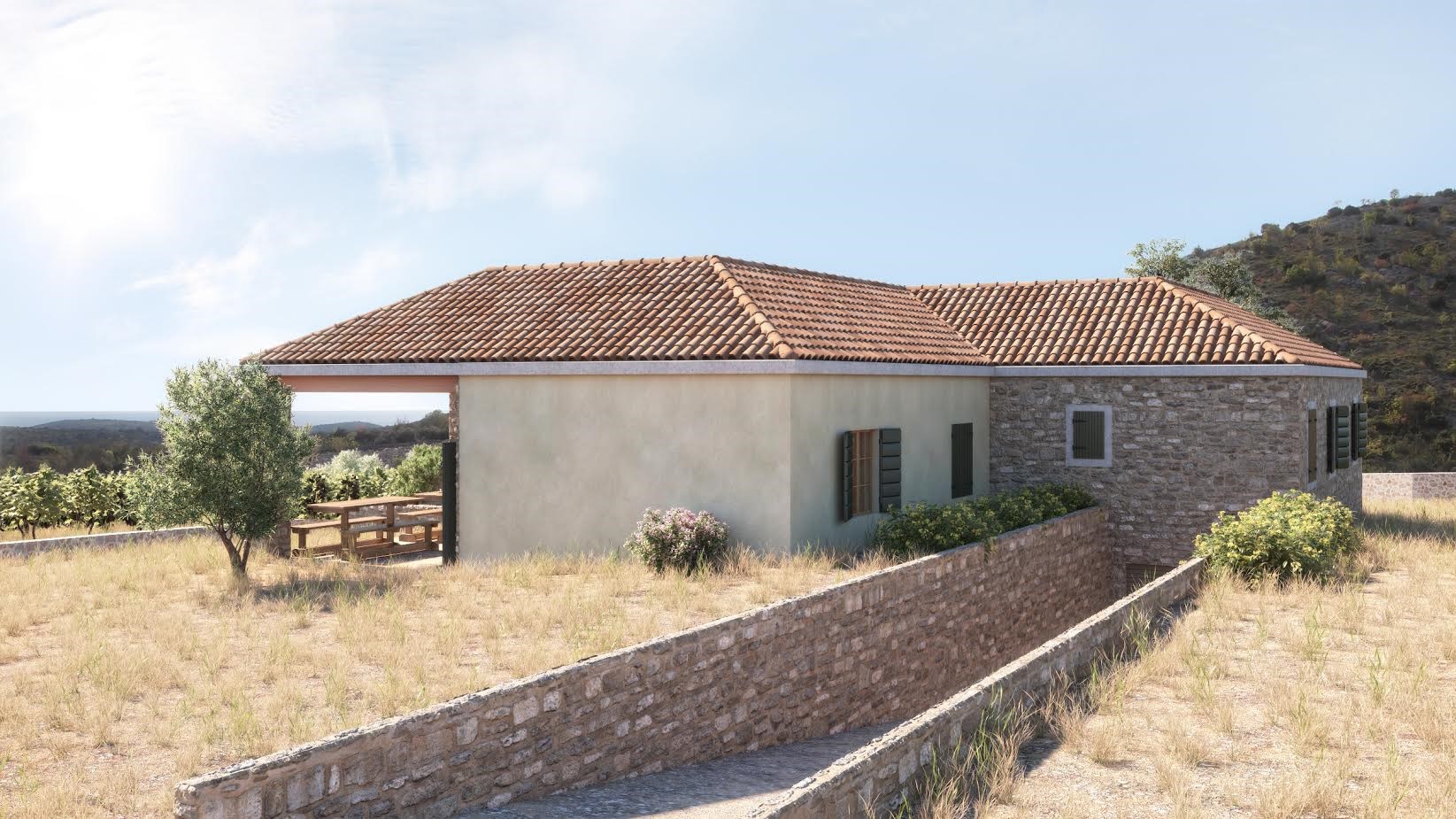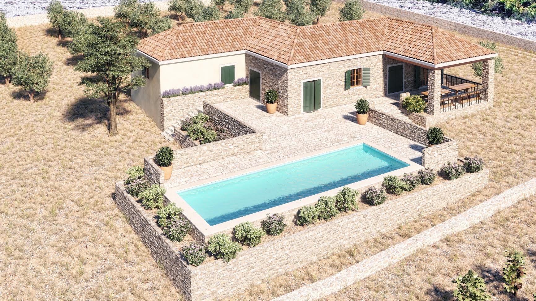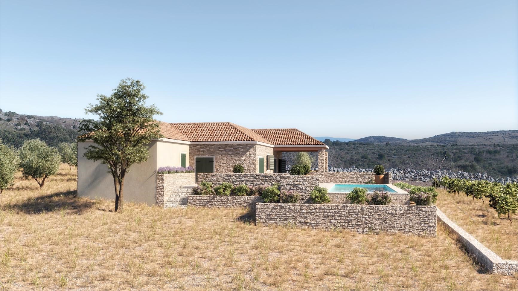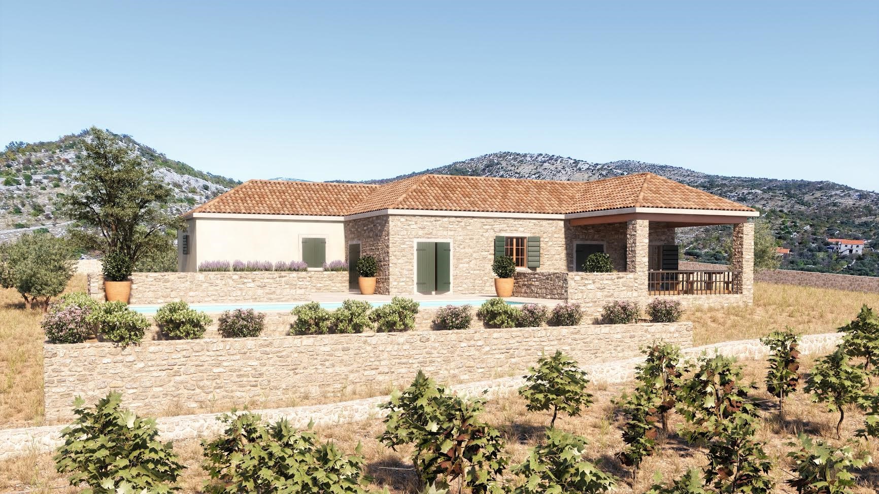Auf seinen weiten 11.700qm Grund im ruhigen Hinterland von Rogoznica, umgeben von 40 Jahre alten Olivenbäumen, kann man seine Privatsphäre ganz besonders genießen. Während der Strom aus erneuerbaren Quellen, wie Photovoltaikanlagen mit Zusatzaggregaten kommt, wird die Wasserzufuhr über einen Tank unter der Immobilie gelöst und macht das Objekt so nahezu Unabhängig von externen Quellen.