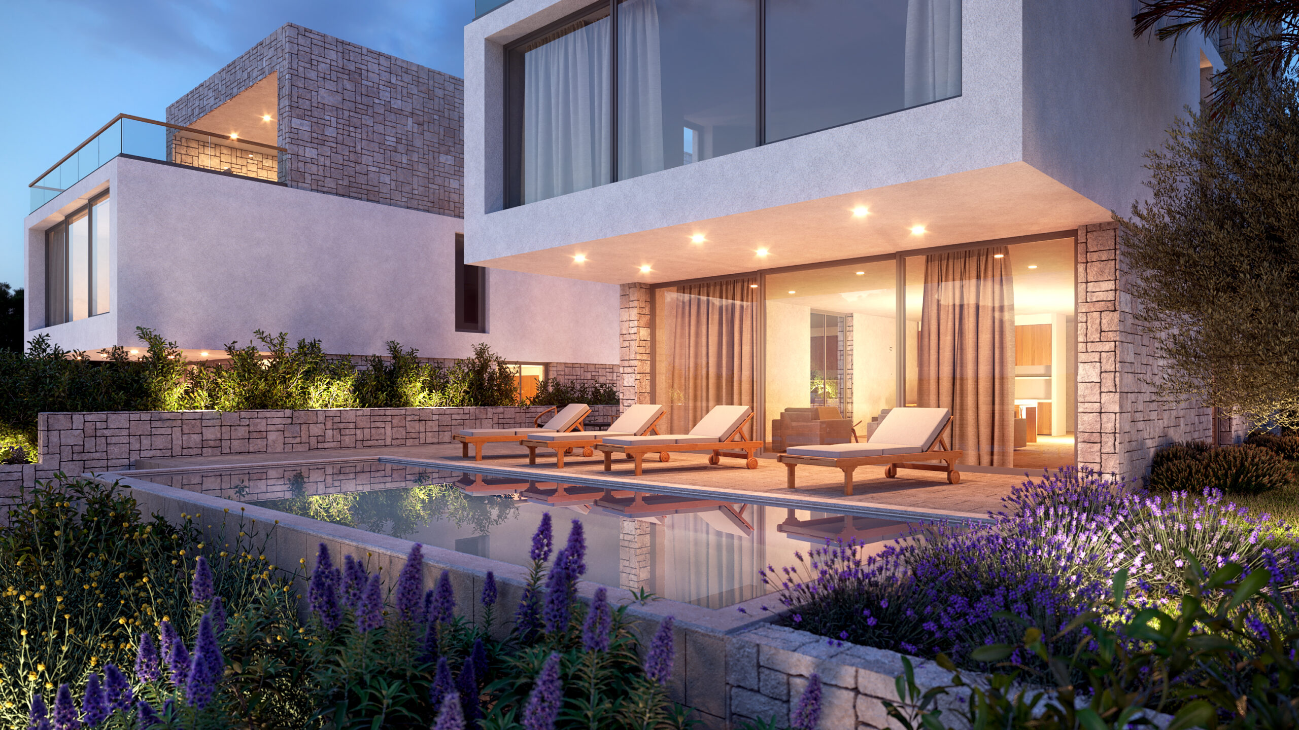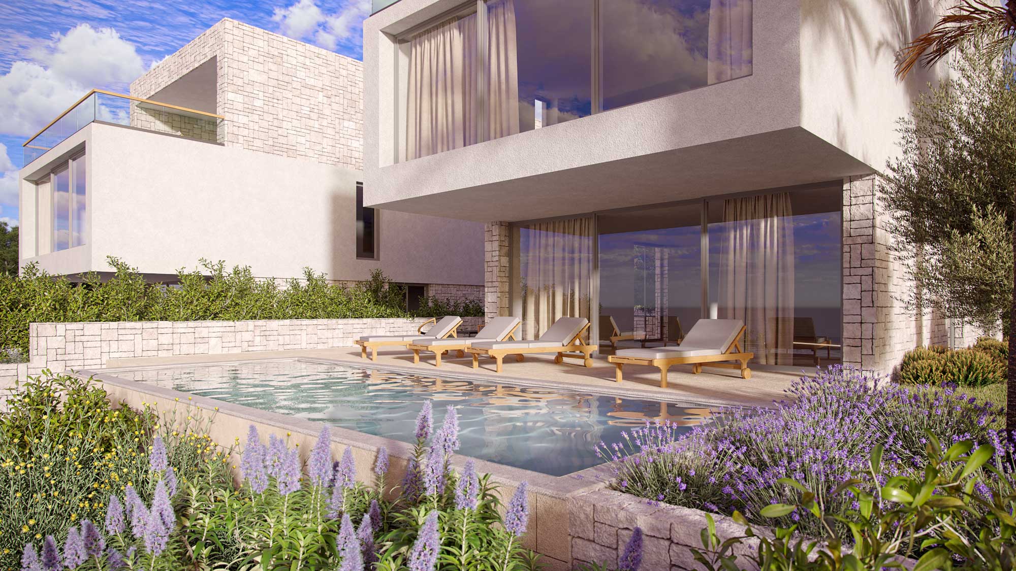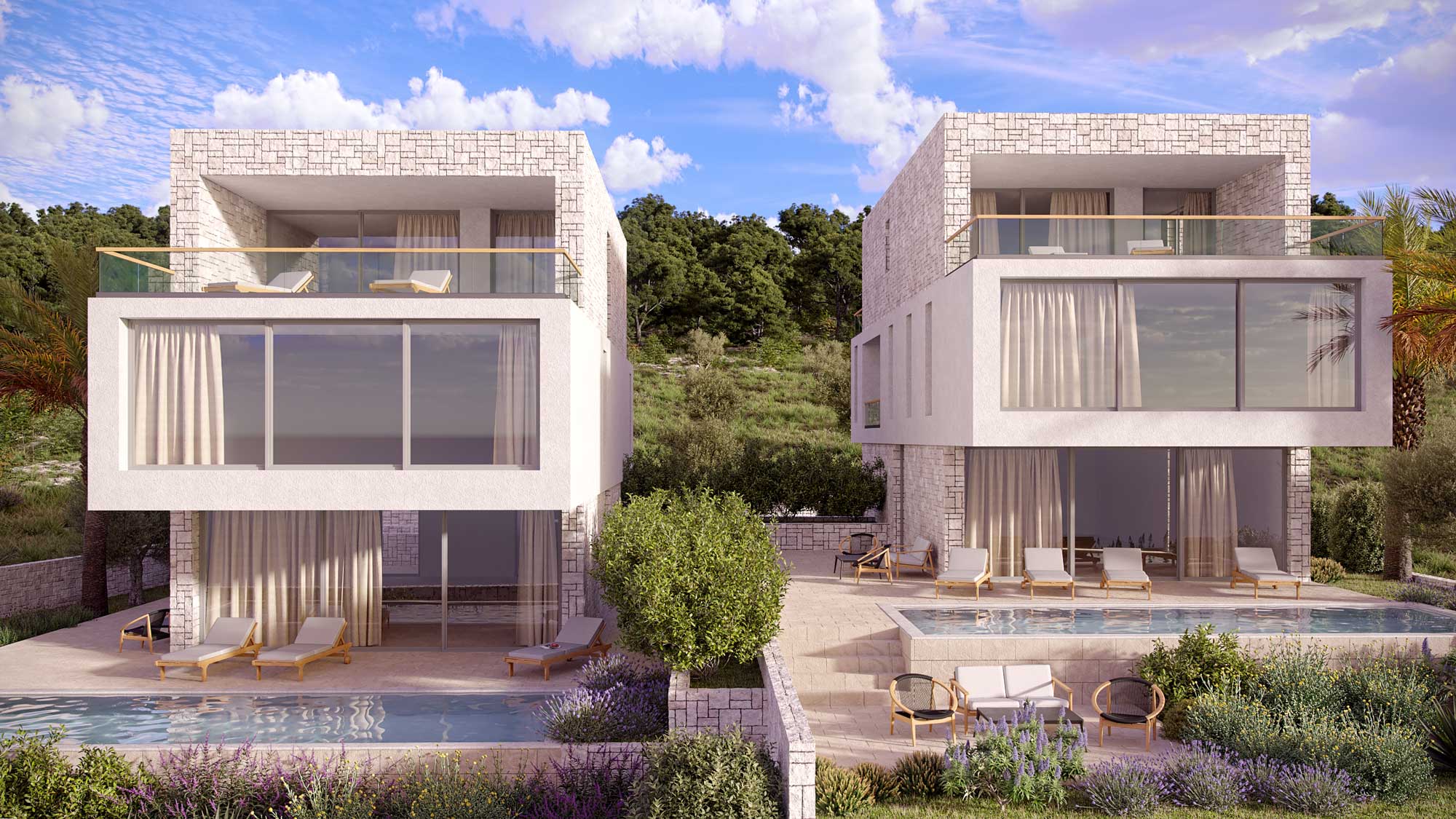 Oberhalb des Zentrums entstehen in einmaliger Toplage in Primosten zwei exklusive Luxusvillen mit Pool, die mit ihrer modernen Architektur in Massivbauweise eine unvergleichliche Ästhetik mit sich bringen. Nach höchsten Maßstäben konstruiert, sind diese Immobilien in ihrer energieeffizienten energetischen Bauweise perfekt für die Eigennutzung und als Kapitalanlage mit hervorragender Rendite. Lassen Sie die Seele in einem angenehmen Raumklima baumeln und entkommen sie dem Stress des Alltags, wenn die offenen Räume abends von warmen Sonnenuntergängen durchflutet werden, während Sie den Ausblick auf das türkisfarbene Meer genießen. Mit separatem Zimmer samt Bad und WC ist diese Immobilie bestens geeignet für die Unterbringung von Haushaltshilfen oder Au-Pairs. Um gänzlich abzuschalten, können Sie den Wellnessbereich mit Sauna, den zweiten Pool oder auf Wunsch einene Jacuzzi auf der Terrasse benutzen.